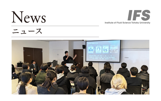 【活動報告】八戸工業高等専門学校にて研究所説明会・座談会を開催2026年1月21日(水)、八戸工業高等専門学校 50周年記念ホールにて、流体科学研究所の教員および高専出身の現役学生による講演・座談会「東北大生とお話しよう」を開催しました。本イベントは、2025年度に発足した「流体研 […] -