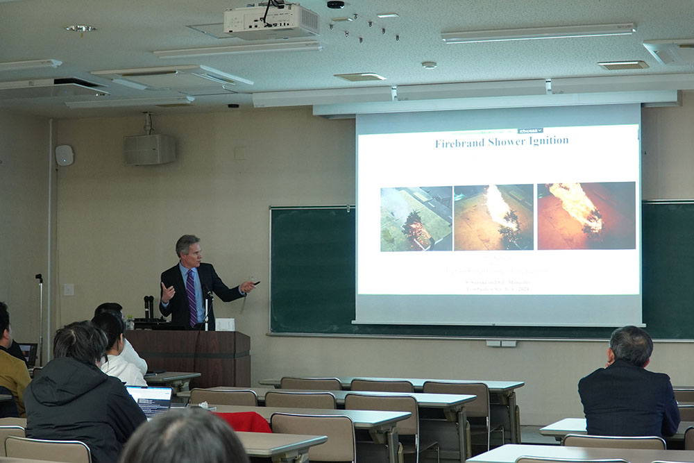 Samuel L. Manzello客員教授(エネルギー動態研究分野)が、世界的に増加するWUI火災(森林と市街地の境界地域における火災)をテーマにしたセミナー『Wildland-Urban Interface (WUI) Fire Disasters: Is Japan Prepared? (林野・市街地にまたがる火災:日本の備えは万全か?)』を開催しました。
