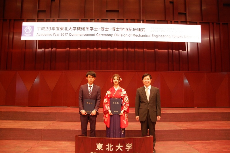 2018年3月29日時田さん(M2)と徳田さん(B4)が卒業式・学位記伝達式に参加しました.