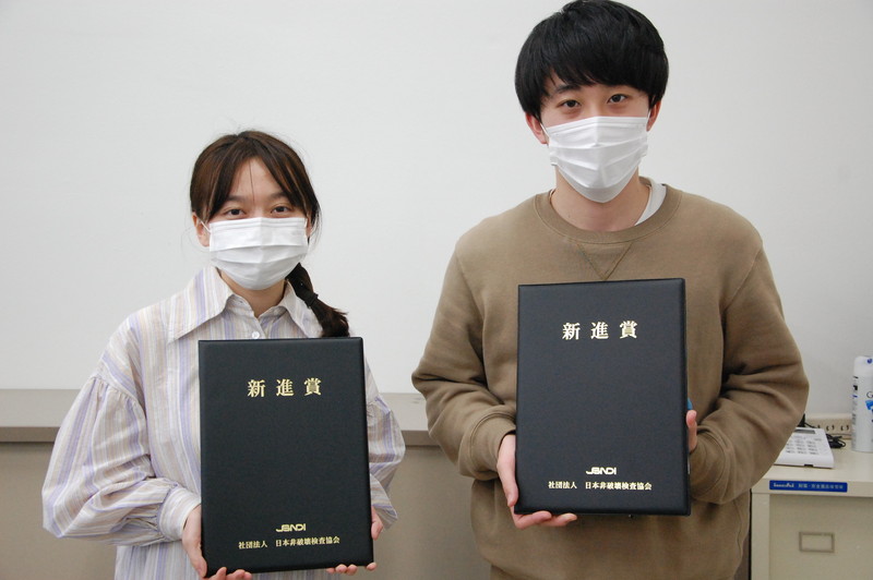 2021年3月29日Lucas(D2),張(D1),竹下,宮内(M1)が(新素材)安全・安心ミニシンポジウムに参加し,張と竹下が新進賞を受賞しました.