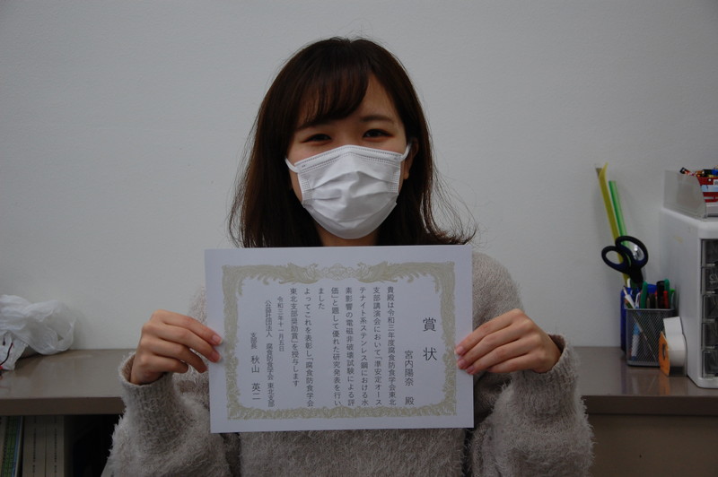 笹田(B4)が工学部長賞を受賞しました.